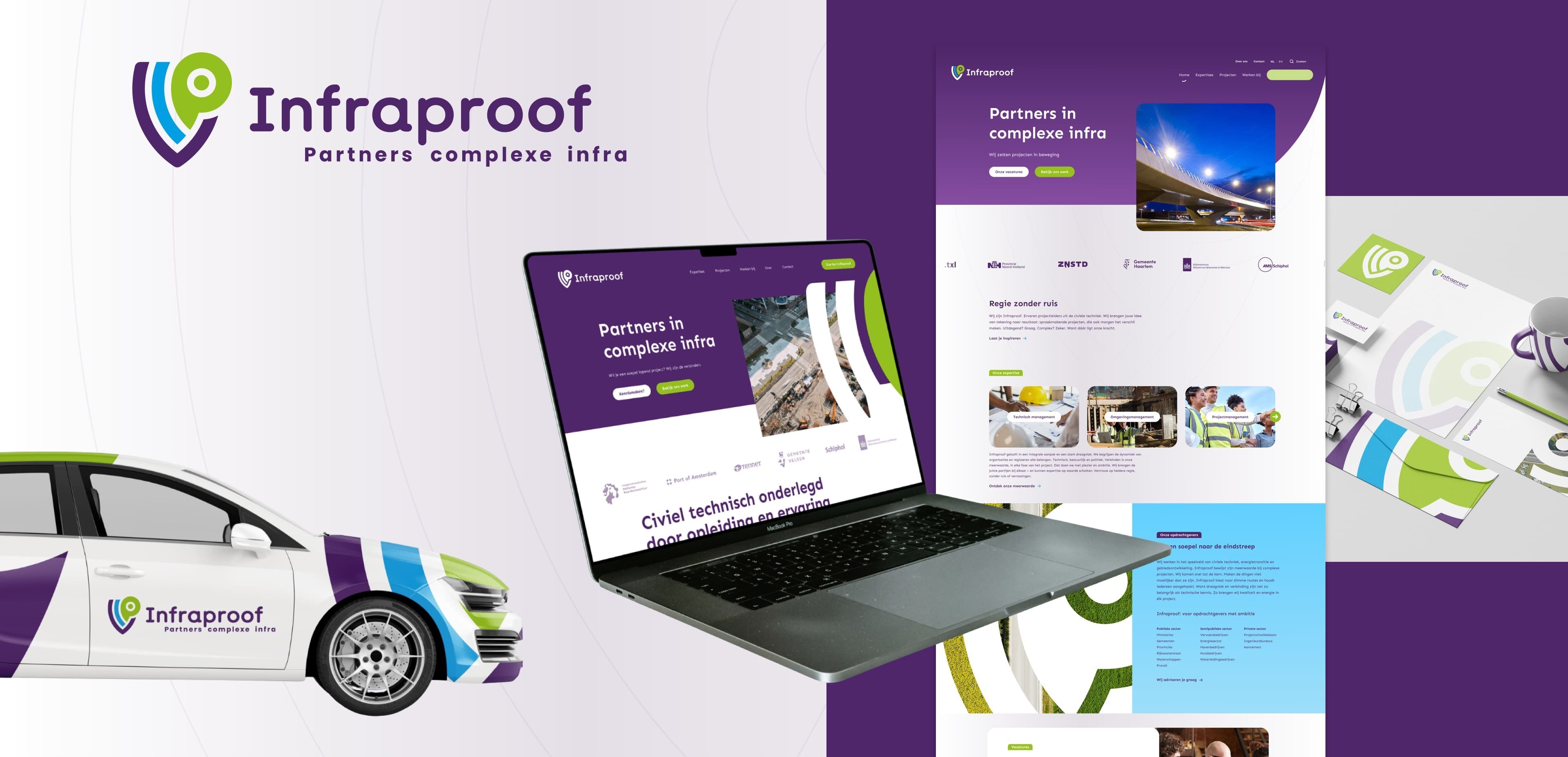 Infraproof is het bedrijf van Eddy en Rijk, twee ervaren projectleiders in civiele techniek. Ze houden van uitdagingen en regie zonder ruis. Kijk, daarmee win je het vertrouwen van grote jongens als een provincie, waterschap of Rijkswaterstaat. Webjongens mocht op zijn beurt rekenen op het vertrouwen van Infraproof. We gingen aan de slag met branding, huisstijl en een nieuwe site.