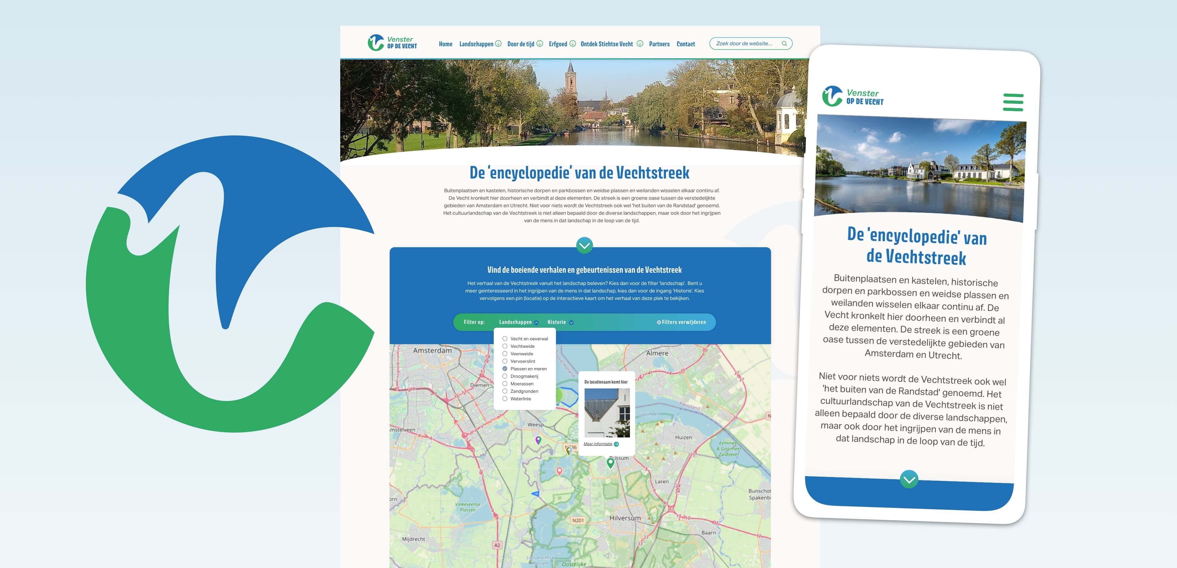 Venster op de Vecht is een online encyclopedie over een uniek cultuurlandschap. Op de site kan het publiek kennismaken met de Vechtstreek. Hier vind je een rijke bundeling van verhalen, thema’s en locaties. De Vechtstreek wordt gepresenteerd als ‘museum zonder muren’. Een levende collectie, die je verrast met kastelen, buitenplaatsen, parkbossen en natuur.